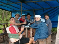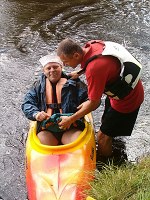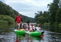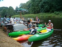 Okolo 8 pro nás přijela dodávka a odvezla nás k lodím. Až do Lenory. Vyfasovali jsme lodě, a kajak a šup na vodu. Šeba jel s Liborem, Laďa s Rudou a Křemil s Koalou. Sandy pádloval sám v kajaku. Asi po 20 minutách na vodě, okusili teplotu Vltavy Křemil s Koalou. Oba nezkušení se otočili na prvních vlnkách, které potkali. Naštěstí přispěchali na pomoc kamarádi a dodali jim energii ve formě tekuté. Pak se postupně obsah alkoholu zvyšoval až gradoval u Ladíka, když se rozhodl nasednout na kajak. Až se tam nasoukal a vyplul, tak si zapálil cigaretku a odpočíval nechaje se unášet proudem. Všichni vyjeli za ním. V jedné zátočině, ale Laďa nezvládnul řízení a vplul pod keře u břehu a vyzkoušel eskymáka. Po poskytnutí pomoci jsme vyjeli dál a šťastně dorazili do našeho prvního kempu Nová pec. V průběhu dne se Laďovi vylila do spacáku skoro celá slivovice do spacáku.V kempu jsme se ubytovali, postavili stany, a šli na pivo. Jednu hospodu jsme zavřeli, a Sandy, Křemil a Ruda šli spát. Zbytek šel ještě na jedno. V hospodě byl muzikant a tak jsme si s ním broukali. Laďa se dostával do ráže a začal mu napovídat text. U písničky Na kolena ne kolena jé jé je, Ladík předvedl svoji taneční kreaci zakončenou na kolenách před muzikantem. Sklidil aplaus celé hospody. Šeba, Libor a Koala zaplatili a šli spát. Laďa ještě pobyl. Rán při vzbuzení jsme se od Sandyho dozvěděli, že Laďa přišel do stanu o půl 6 jen ve slipech a s Ledvinkou. Prý chodil po lese, bosky bez oblečení a byla mu hrozná zima. Jelikož pro nás brzo přijel odvoz, tak jsme nechali Laďove ztracené věci napospas času a přírodě a vyrazili dál. Do vyššího Brodu. Cestou jsme se zastavili u Čertových kamenů. Libor nám pověděl pověst a pak už jsme nastupovali na lodě. Ve Vyšším Brodě jsme si všichni vyzkoušeli šlajznu a jen Koala a Křemil hupsli do vody. Ještě Sandy se otočil s kajakem při přistáváni. Pak jsme pokračovali, až do Rožmberka, kde jsme se najedli, dali pivko a pokračovali směrek k našemu druhému noclehování. Koala zjistil že mu do oblečení vytekl opalovací krém. Po cestě jsme narazili na plovoucí bar a dali si další pivko. Pitný režim je potřeba dodržovat. V klidu js,me pak dorazili do kempu a ubytovali jsme se. Koala, Libor a Křemil se vydali přes řeku na skákací lano a zablbli si. Ráno nás čekala nejkratší cesta, protože jsme jeli jen do Českého Krumlova, který jsme si chtěli prohlédnout. Po cestě byli nějaké šlajzny a první úspěch zaznamenali Křemil a Koala. Neudělali se. V Krumlově jsme vyrazili do města, kde jsme se najedli a napili, koukli na město jak za denního světla, tak za noci. Křemil zakončil svoji návštěvou tohoto města průjmem. Ráno nás čekali hnedle 3 šlajzny v Krumlově. První zase neprojeli jen Koala s Křemilem, druhá proběhla v pohodě a 3, největší raději nejeli. Na kraji krumlova jsme se najedli a pokračovali do Zlaté Koruny. Po cestě se trošku zhoršilo počasí. Poslední šlajzna před Korunou se zdála být v pohodě i Křemilovi s Koalou, ale....., nezvládli ji a tak hups do vody. Až jsme se vybalovali tak teprve koala zjistil že nezavřel pořádně sud a nateklo mu do věcí. Vše mokré. naštěstí si ulil jedno triko do auta, a jako zázrakem tepláky se nenamočili. Tak jsme odevzdali lodě, šli se najíst do hospody a vyrazili k domovu. Po cestě nám pršelo, a nám se povedlo skoro projet duhou. Domů jsme dojeli okolo 20 hodiny.